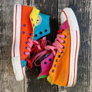 RARE & AMAZING ONE OF A KIND NEON COLOR BLOCK HIGH TOP CHUCK TAYLOR CONVERSE SNEAKERS