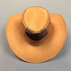 LEATHER BRIMMED COWBOY HAT BRINDLE PONY HAIR COWHIDE PANEL