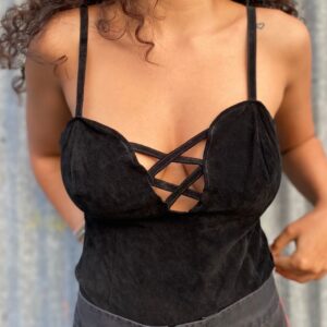 1980S SUPER HIGH CUT SUEDE BODYSUIT MESH BACK