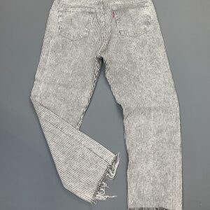 1990S AMAZING & RARE PERFECTED DISTRESSED & BROKEN-IN LEVIS PINSTRIPED DENIM JEANS FRAYED HEM