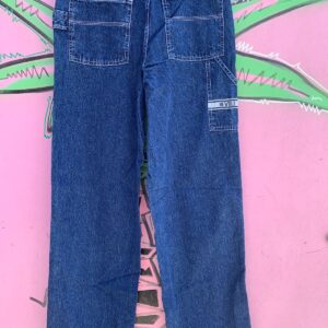 CUTE! 1990S DEADSTOCK DARK DENIM WIDE LEG CARPENTER JEANS CONTRAST STITCHING – NWT