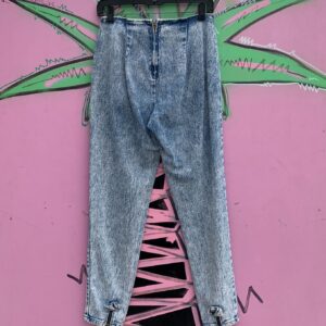 KILLER 1980S HIGH WAIST ACID WASH DENIM CIGARETTE PANTS BACK ZIPPER