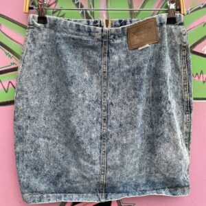 *AS-IS* 1980S ACID WASH DENIM MINI SKIRT FULL ZIP FRONT