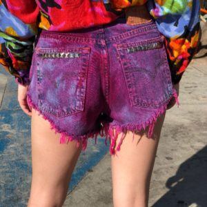 LEVIS DENIM SHORTS – CUTOFF – 501 – RED TAB – CUSTOM STUDDED – DYED PASTEL COLOR