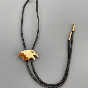 ENAMELED EAGLE’S HEAD PENDANT BLACK WOVEN CORD BOLO TIE