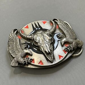1990S SOUTHWESTERN BUFFALO SKULL & EAGLES BELT BUCKLE ENAMELED DETAILS
