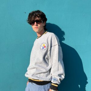 NFL PITTSBURGH STEELERS EMBROIDERED LOGO PULLOVER SWEATSHIRT W/ CONTRAST CUFFS