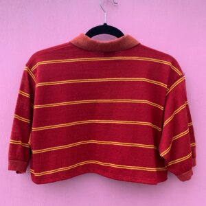 CUTE! 1980S RETRO CROPPED STRIPED COLLARED USC POLO SHIRT EMBROIDERED LOGO