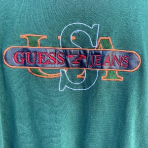 GUESS JEANS USA LEATHER EMBROIDERED T SHIRT W/ CONTRAST EXPOSED HEMS