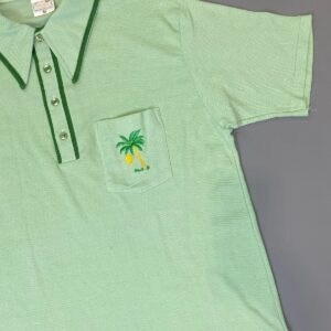 AMAZING! 1960S DAGGER COLLAR POLO SHIRT EMBROIDERED PALM TREE