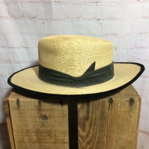 LARGE FLAT BRIMMED PANAMA STYLE WOVEN HAT VELVET TRIM LEATHER INTERIOR BAND