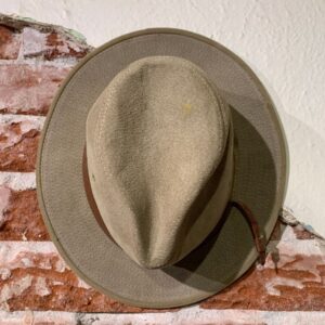 SUEDE PANAMA HAT W/ BROWN LEATHER STRAP – AS IS
