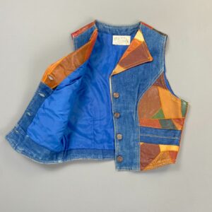 SWEET! 1970S DENIM & LEATHER PATCHWORK WESTERN STYLE VEST – SMALL FIT
