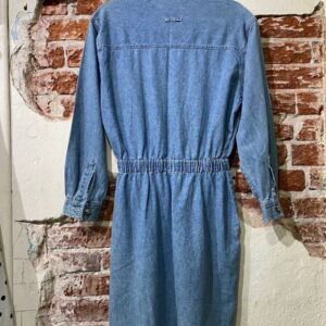 1980S-90S LS DENIM MID LENGTH DRESS WITH STRETCH WAIST AS-IS