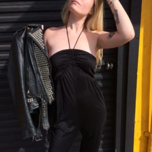 LITTLE COTTON JUMPSUIT HALTER TIE NECK