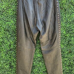 BLACK STUDDED LEATHER HIGH WAISTED STRAIGHT LEG PANTS
