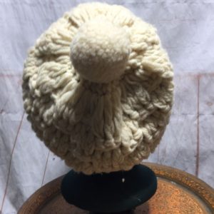 RETRO KNITTED BEANIE W/ POM POM & BASKETWEAVE PATTERN