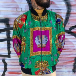 REVERSIBLE BAROQUE SATIN BOMBER JACKET