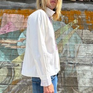 COLORFUL EMBROIDERED MAUI FISH COLLARED PULLOVER SWEATSHIRT