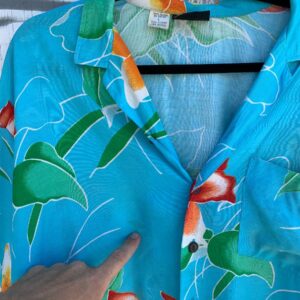 SILKY NYLON FLORAL PRINT HAWAIIAN BUTTON UP LADIES SHIRT