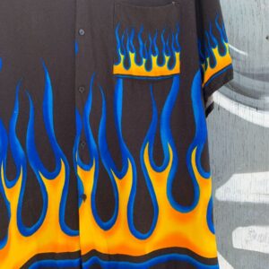 HOTROD PIN STRIPE FLAME PRINT RAYON HAWAIIAN BUTTON UP SHIRT