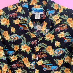 1990S WOODY WAGON COTTON HAWAIIAN BUTTON UP SHIRT