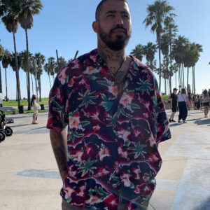 UNIQUE RECONSTRUCTED HAWAIIAN PRINT POLO SHIRT