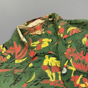 *AS-IS* GORGEOUS!!!! 1940S SLINKY RAYON SATURATED GREEN HAWAIIAN SHIRT – RIPPED TO HELL