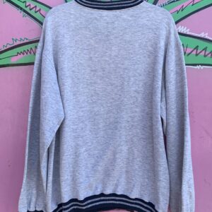 1985 HEATHER GREY VILLANOVA V-NECK SWEATSHIRT STRIPED RIBBING
