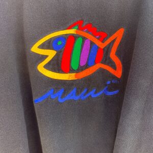 COLORFUL EMBROIDERED MAUI FISH COLLARED PULLOVER SWEATSHIRT