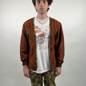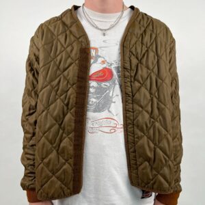 *AS-IS* CHOCOLATE BROWN QUILTED MILITARY LINER JACKET W/ SNAP BUTTONS