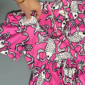 WOWW! 1960S BRIGHT! PINK! ALLOVER KOI FISH PRINTED MAXI DRESS