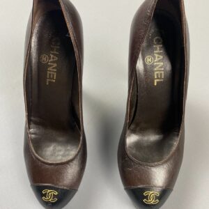BROWN LEATHER TOE CAP LOGO TOE PUMPS