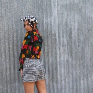 SUPER CUTE HALF HORIZONTAL STRIPED ZIP UP SKIRT 10-15