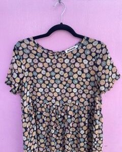 LITTLE FLORAL PRINTED RAYON TOP CAP SLEEVE