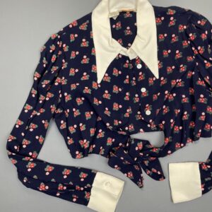 1970S FLORAL PRINT LONG SLEEVE BUTTON UP MINI DRESS W/ COLLAR