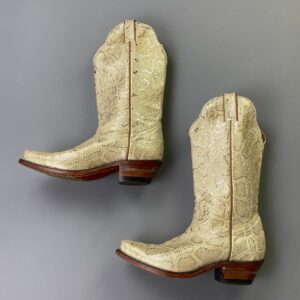 WOW! MADE IN CANADA SILVER SNAKESKIN PRINT CREME LEATHER COWBOY BOOTS
