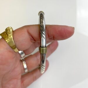 925 STERLING SILVER & BRASS COILED DETAIL BANGLE BRACELET ETCHED DETAIL