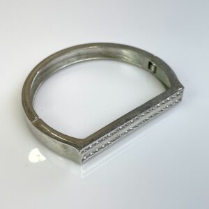 POLISHED CHROME HINGED BRACELET DOUBLE ROW RHINESTONE DETAIL