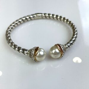 HINGED TWISTED SILVER BRACELET PEARL & RHINESTONE ADORNMENTS