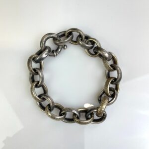 STERLING SILVER MIXED HAMMERED CHAIN LINK BRUTALIST STYLE BRACELET