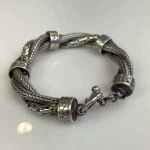 925 STERLING SILVER TWISTED HERRINGBONE MIXED CHAIN LINK BRACELET TOGGLE CLOSURE