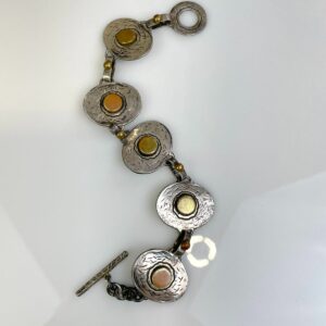 TRI-TONE SILVER, BRASS & COPPER BRUTALIST STYLE CHAIN LINK BRACELET, TOGGLE CLOSURE
