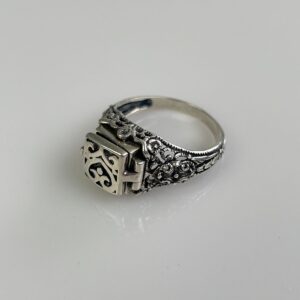SWEET 925 FILIGREE STYLE STERLING SILVER SNUFF LOCKET POISON RING *STAMPED