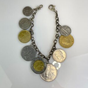 VINTAGE DANGLING ITALIAN COINS CHAIN LINK BRACELET