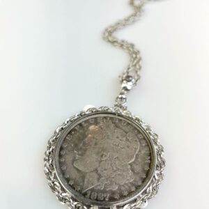 1887 MORGAN SILVER DOLLAR CHAIN WRAPPED PENDANT NECKLACE