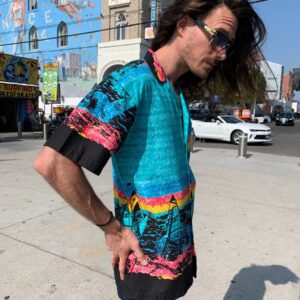 1980S VIBRANT WINDSURFING RAINBOW PRINT HAWAIIAN SHIRT