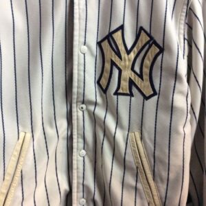 NY YANKEES BASEBALL JACKET – PINSTRIPE DESIGN W/LEATHER TRIM & FLEECE LINING