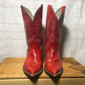 EEL SKIN LEATHER COWBOY BOOTS W/ POINTED TOE& CONTRAST STITCHING