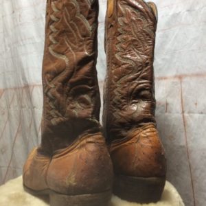 LEATHER COWBOY BOOTS W/ OSTRICH HEELS/TOES & PULLS